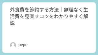 生活費を減らす 外食費を節約する方法|無理なく生活費を見直すコツをわかりやすく解説 外食費を節約する方法を初心者向けにわかりやすく解説。回数の見直し、平日の昼食コスト削減、デリバリー利用の見直しなど、無理なく生活費を減らすコツをまとめました。 2026.03.16 生活費を減らす