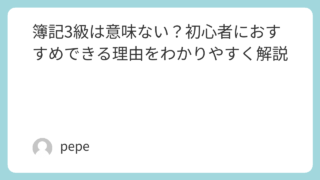 資格・スキル 簿記3級は意味ない?初心者におすすめできる理由をわかりやすく解説 簿記3級は意味ないのかを初心者向けにわかりやすく解説。家計管理、副業、収支管理にどう役立つのか、向いている人や学ぶメリットをまとめました。 2026.03.18 資格・スキル